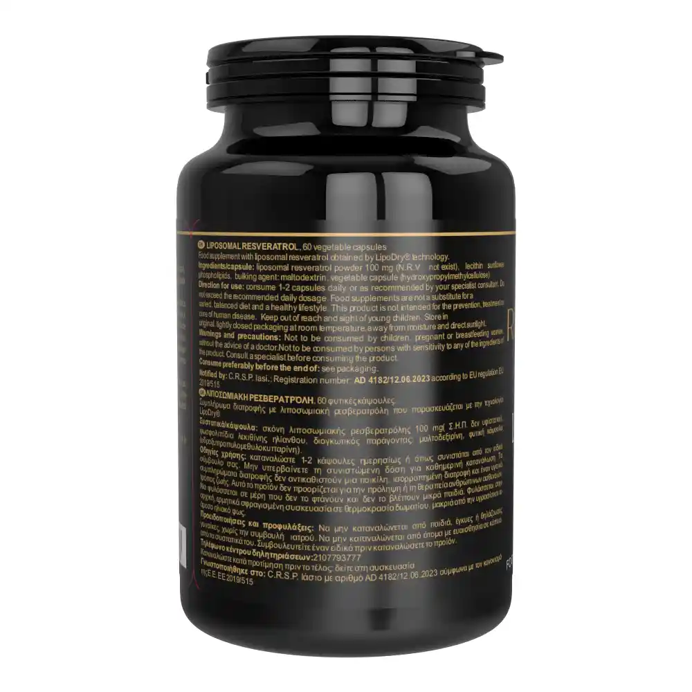 Liposomal Resveratrol 100 mg — potent antioxidant & sirtuin activator with dramatically improved absorption. LipoDry® technology. 60 capsules, 2-month supply.
